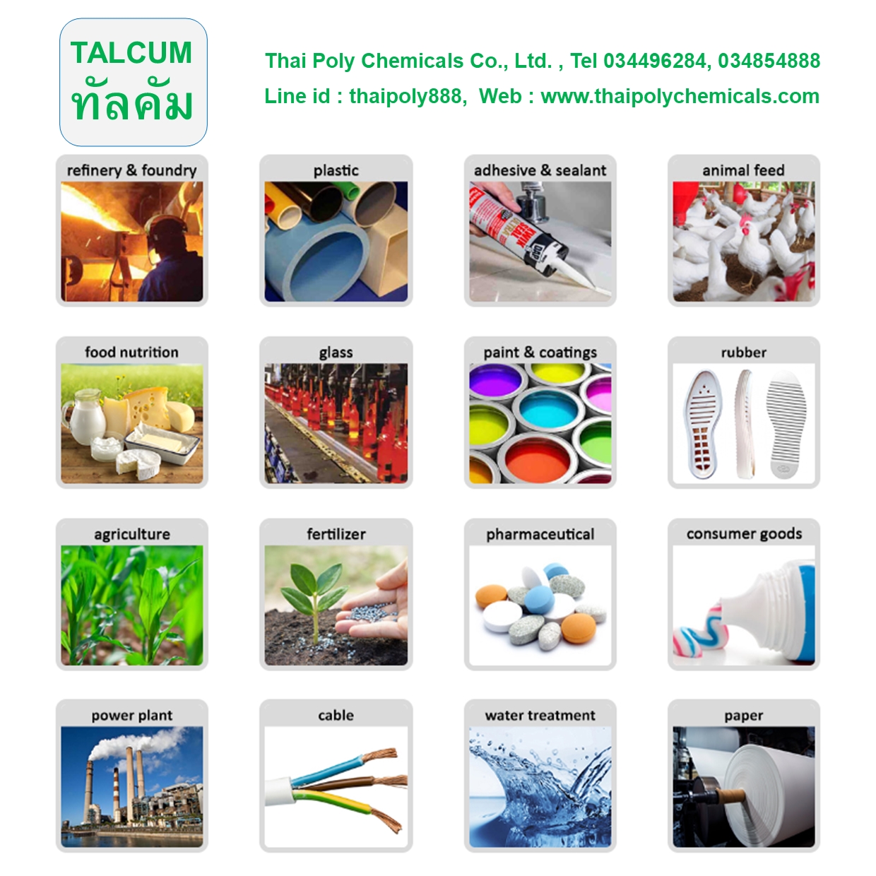 พีวีซี, พีวีซีเรซิน, พีวีซีเพสต์เรซิน, พอลิไวนิลคลอไรด์, PVC, PVC RESIN, PVC PASTE RESIN, POLYVINYLCHLORIDE ผลิตพีวีซี, จำหน่ายพีวีซี, นำเข้าพีวีซี, ส่งออกพีวีซี, โรงงานพีวีซี, ไทยแลนด์พีวีซี, พีวีซีไทยแลนด์ ผลิตพีวีซีเรซิน, จำหน่ายพีวีซีเรซิน, นำเข้าพีวีซีเรซิน, ส่งออกพีวีซีเรซิน, โรงงานพีวีซีเรซิน ผลิตพีวีซีเพสต์เรซิน, จำหน่ายพีวีซีเพสต์เรซิน, นำเข้าพีวีซีเพสต์เรซิน, ส่งออกพีวีซีเพสต์เรซิน, โรงงานพีวีซีเพสต์เรซิน ผลิตPVC Resin, จำหน่ายPVC Resin, นำเข้าPVC Resin, ส่งออกPVC Resin, โรงงานPVC Resin สามารถสอบถามข้อมูลสินค้า ขอตัวอย่างสินค้าทดลอง และสั่งซื้อสินค้าได้ที่ บริษัท ไทยโพลีเคมิคอล จำกัด (พีวีซี เรซิน) Thai Poly Chemicals Company (PVC Resin) Tel No: 034854888 Mobile: 0893128888 Line ID: thaipoly8888 Email: thaipoly8888@gmail.com Web: www.thaipolychemicals.comMTT 015 PVC RESIN TH พีวีซีเรซิน (PVC RESIN) พีวีซี, พีวีซีเรซิน, พอลิไวนิลคลอไรด์, โพลีไวนิลคลอไรด์, พีวีซีเพสต์เรซิน PVC, PVC RESIN, POLYVINYLCHLORIDE, PVC PASTE RESIN พีวีซีพลาสติซอล, พีวีซีอีมัลชัน, พีวีซีซัสเพนชัน, พีวีซีผง, พีวีซีเพสต์, พีวีซีเหลว PVC PLASTISOL, PVC EMULSION, PVC SUSPENSION, PVC PASTE, PVC POWDER พีวีซีเกรดท่อ, พีวีซีเกรดฉีด, พีวีซีเกรดรีด, พีวีซีคอมปาวด์, พีวีซีเม็ด, พีวีซีเกรดชุบ, พีวีซีนิ่ม PVC PIPE GRADE, PVC EXTRUSION, PVC CALAENDERING, PVC COMPOUND PVC CASTING, PVC DIPPING, PVC SOFT, PVC RIGID, PVC PELLET, PVC HOMO นอกจาก พีวีซีเรซิน PVC Rosin แล้ว บริษัท ฯ ยังจัดจำหน่าย เคมีภัณฑ์อีกหลายรายการดังนี้ พลาสติไซเซอร์ (Plasticizer) ได้แก่ Chlorinated Paraffin (CPW) คลอริเนตเตต พาราฟิน (พลาสออยล์) Dibutyl Adipate (DBA) ไดบิวทิล อาดิเปต (ดีบีเอ) Dibutyl Phthalate (DBP) ไดบิวทิล พทาเลต (ดีบีพี) Di-2-ethylhexyl-Adipate (DEHA) ได-2-เอทิลเฮกซิล-อาดิเปต (ดีอีเอชเอ) Di-2-ethylhexyl-Phthalate (DEHP) ได-2-เอทิลเฮกซิล-พทาเลต (ดีอีเอชพี) Di-isodecyl Phthalate (DIDP) ไดไอโซเดคซิล พทาเลต (ดีไอดีพี) Di-isononyl Phthalate (DINP) ไดไอโซโนนิล พทาเลต (ดีไอเอ็นพี) Dioctyl Adipate (DOA) ไดออกทิล อาดิเปต (ดีโอเอ) Dioctyl Phthalate (DOP) ไดออกทิล พทาเลต (ดีโอพี) Dioctyl Terephthalate (DOTP) ไดออกทิล เทเรพทาเลต (ดีโอทีพี) Epoxidized Soybean Oil (EPO) อีพอกซิไดซ์ ซอยบีน ออยล์ (อีพีโอ) Epoxidized Soya Bean Oil (ESBO) อีพอกซิไดซ์ ซอยย่า บีน ออยล์ (อีเอสบีโอ) Non-Phthalate (Phthalate Free) พลาสติไซเซอร์ปลอดสารพทาเลต (พทาเลตฟรี) Trioctyl Trimellitate (TOTM) ไตรออกทิล ไตรเมลลิเทต (ทีโอทีเอ็ม) Specialty Plasticizer พลาสติไซเซอร์ ชนิดพิเศษอื่นๆ ฟิลเลอร์ (Filler) แร่, มิเนอรัล (Mineral) Calcium Carbonate (CaCO3) แคลเซียม คาร์บอเนต Calcium Carbonate Powder แคลเซียม คาร์บอเนต ผง Calcium Carbonate Feed Grade แคลเซียม คาร์บอเนต เกรดอาหารสัตว์ Calcium Carbonate Food Grade แคลเซียม คาร์บอเนต เกรดอาหาร Calcium Carbonate Industrial Grade แคลเซียม คาร์บอเนต เกรดอุตสาหกรรม Calcium Carbonate Masterbatch แคลเซียม คาร์บอเนต มาสเตอร์แบทช์ Calcium Carbonate Pellet แคลเซียม คาร์บอเนต เม็ด Calcium Carbonate Pharmaceutical Grade แคลเซียม คาร์บอเนต เกรดยา Coated Calcium Carbonate แคลเซียม คาร์บอเนต เกรดเคลือบผิว Ground Calcium Carbonate แคลเซียม คาร์บอเนต เกรดแป้งหนัก Precipitated Calcium Carbonate แคลเซียม คาร์บอเนต เกรดแป้งเบา Uncoated