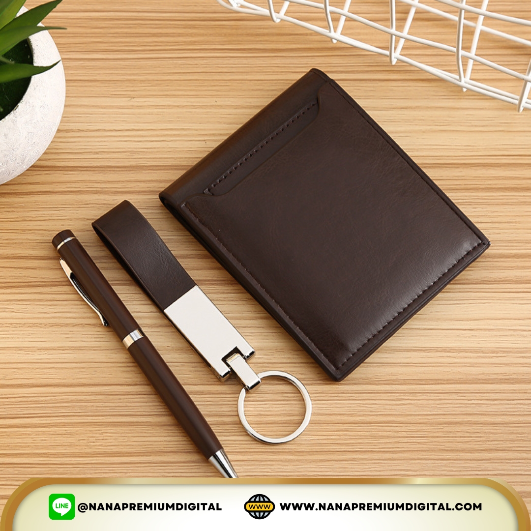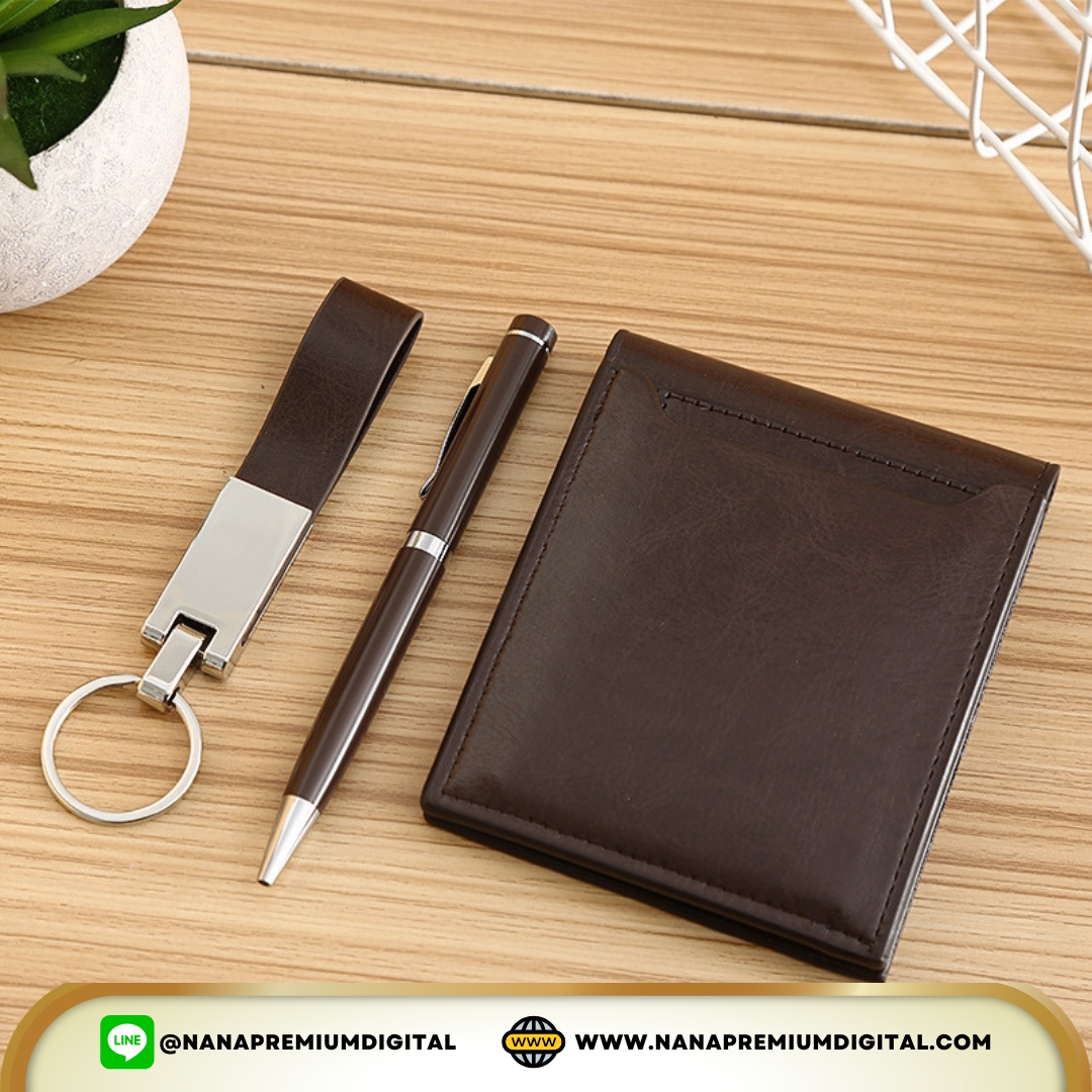ในโลกของธุรกิจที่ภาพลักษณ์และความเป็นมืออาชีพคือสิ่งสำคัญ การเลือกสรรของชำร่วยเพื่อมอบให้กับบุคคลระดับวีไอพีหรือพาร์ทเนอร์คนพิเศษจึงต้องพิถีพิถันอย่างมาก ชุดของขวัญเครื่องหนังสีน้ำตาลเข้มเซ็ตนี้ถูกออกแบบมาเพื่อตอบโจทย์ดังกล่าวอย่างสมบูรณ์แบบ ภายในกล่องสีดำดีไซน์เรียบหรูบรรจุไอเทมคู่กายที่นักบริหารหรือคนทำงานทุกคนต้องมีติดตัว ได้แก่ กระเป๋าสตางค์ใบสั้นทรงพับที่ตัดเย็บอย่างประณีต พวงกุญแจหนังประดับอะไหล่โลหะเงางามที่ดูภูมิฐาน และปากกาด้ามหรูที่พร้อมสำหรับการจดบันทึกหรือเซ็นเอกสารสำคัญ ทุกชิ้นคุมโทนสีและวัสดุให้มีความกลมกลืนกัน สร้างสัมผัสแห่งความพรีเมียมตั้งแต่เปิดกล่อง